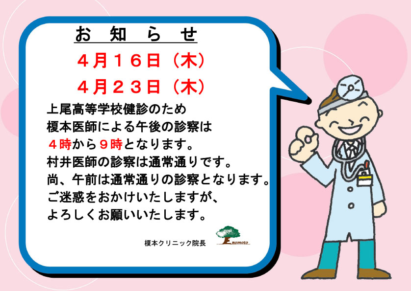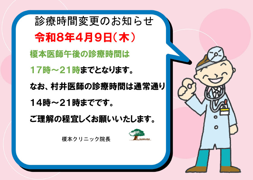 - ●2010.11.01 クリニック名称変更(榎本外科医院→榎本クリニック)